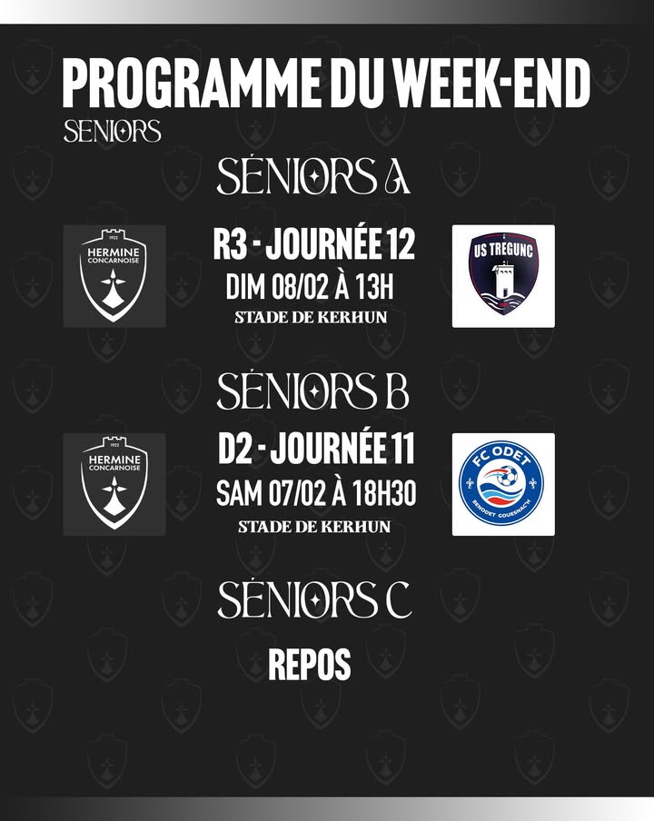 Voici lâensemble des rencontres de nos Ă©quipes pour ce week-end âœïž