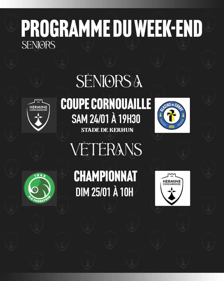 Nos seniors A seront opposĂ©s aux Glaziks de Coray dans le cadre de la Coupe de Cornouaille samedi Ă  19h30 Ă  Kerhun đŸ‘ŠđŸœ