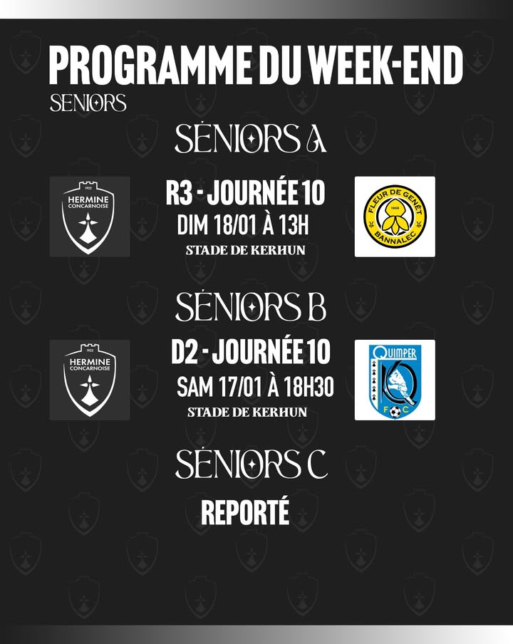 Nos Seniors D2 affronteront Quimper Kerfeunteun C à Kerhun demain soir à 18h30 👀